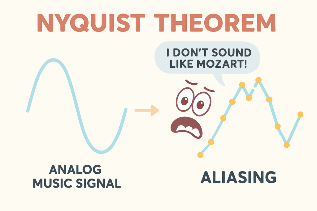 - Wird diese Bedingung nicht erfüllt, entsteht Aliasing – ein höllisches Phänomen, bei dem Frequenzen plötzlich als völlig andere hörbar werden. Es ist, als würde man Mozart aufnehmen und beim Abspielen klingt es wie ein sterbender Staubsauger.