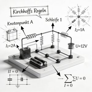 Da stellen wir uns also mal ganz dumm und sagen: „Das da… das is’n Stromkreis.“ Und mitten drin sitzt ein schwarzes Loch – nicht im astronomischen Sinne, sondern im pädagogischen. Ein Punkt, an dem der Strom reinfließt, rausfließt, sich wundert, warum er überhaupt fließt, und sich dann doch wieder beruhigt, weil die Physik ihm sagt: …