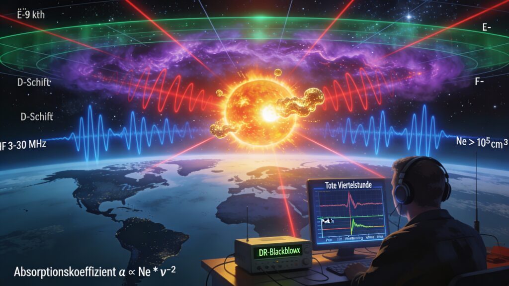 Der Effekt beschreibt einen plötzlichen, massiven Ausfall der Kurzwellen‑Ausbreitung, ausgelöst durch intensive solare Röntgenstrahlung. Diese Strahlung trifft die D‑Schicht der Ionosphäre und sorgt dafür, dass sie: