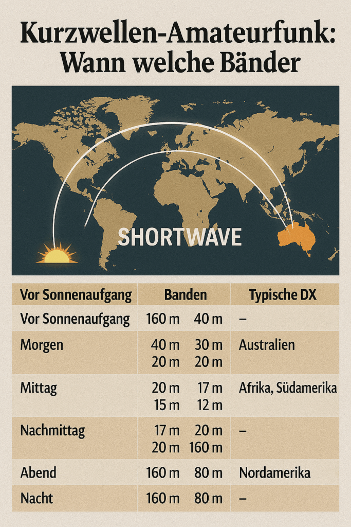 Kurzwellenbänder sind wie Gäste auf einer schlechten WG-Party: Manche tauchen nur morgens auf, andere erst nach Mitternacht, und einige sind den ganzen Tag da, aber reden nur mit bestimmten Leuten.